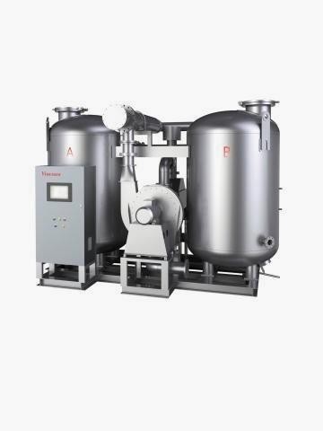 VZAH-40系列鼓风热零气耗再生吸附式干燥机再生过程使用鼓风机吸入环境空气经过加热后对潮湿吸附剂进行同向加热再生,冷却使用鼓风机和中间冷却器对高温吸附剂进行闭环冷却。整个再生过程中不消耗昂贵的产品干空气,运行成本更低。